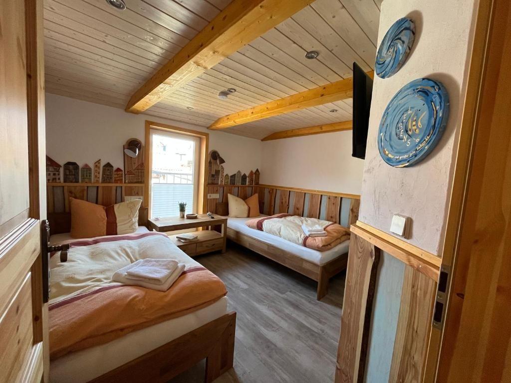 Bietet ausreichend Platz für zwei Personen in zwei Einzelbetten und ist ebenfalls mit Sat-TV ausgestattet.