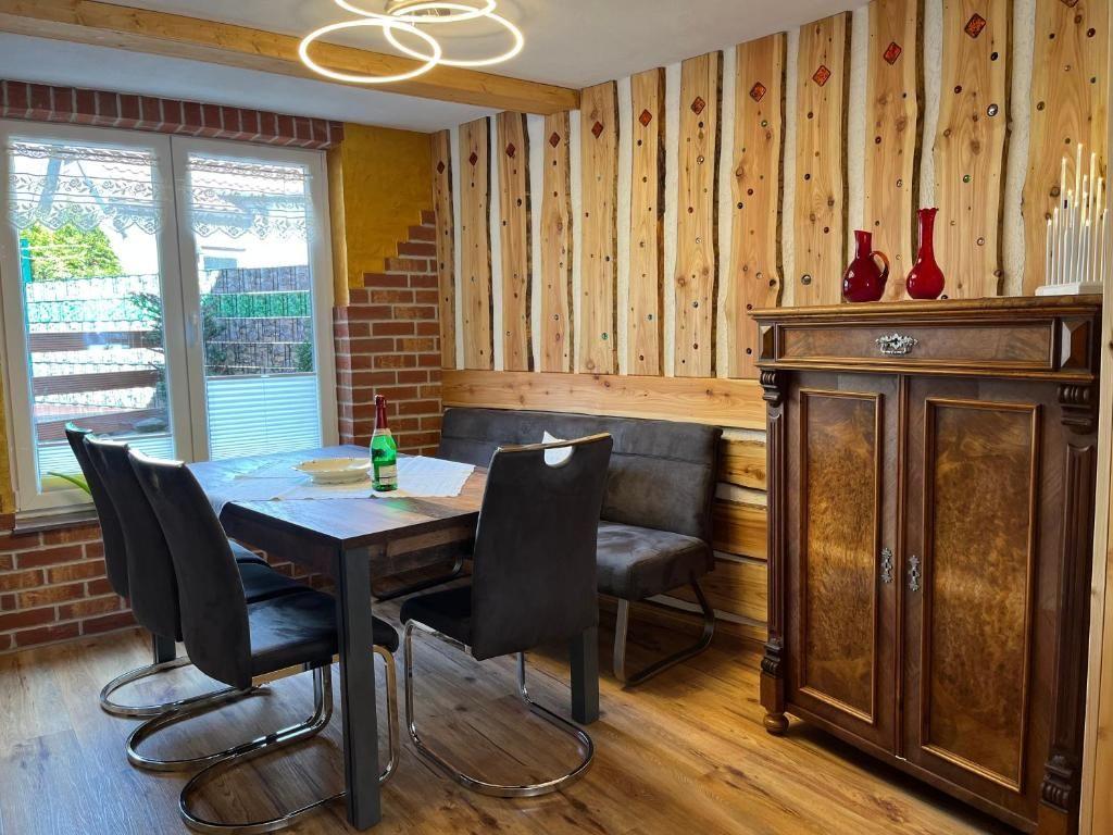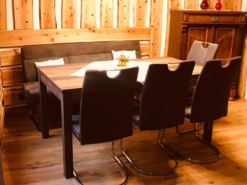 Das Esszimmer bietet ausreichend Platz für bis zu sechs Personen und ist offen mit Wohnzimmer und Küche verbunden.