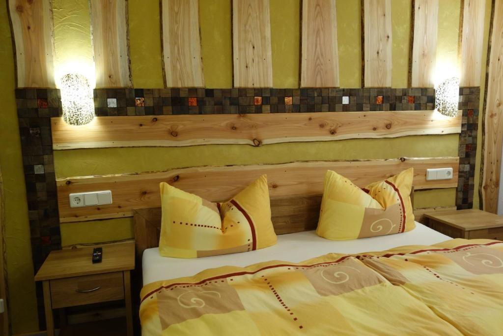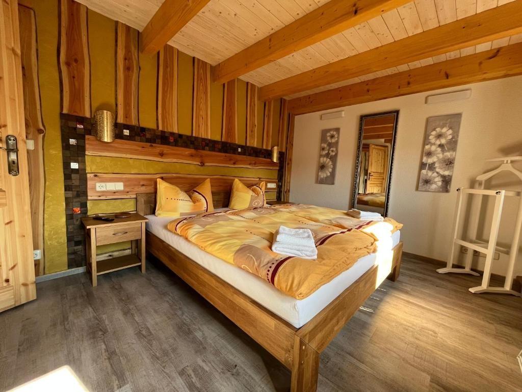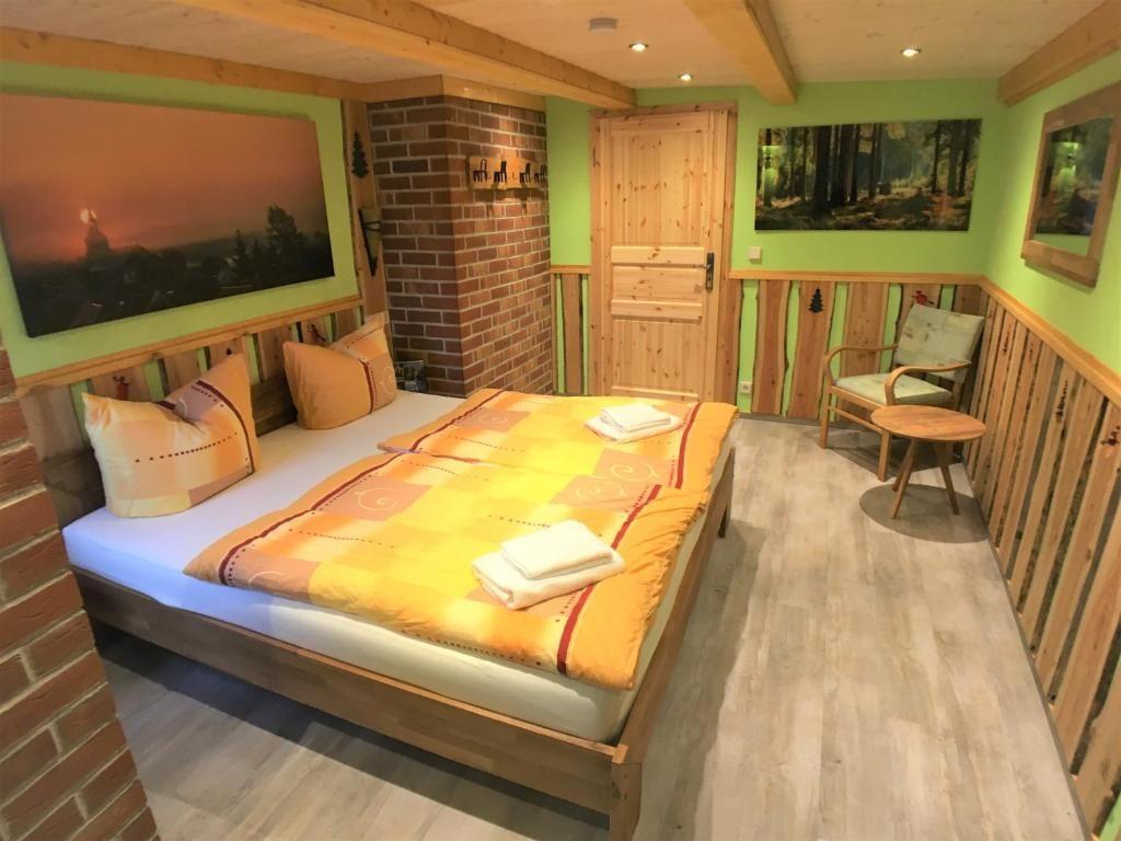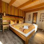 Ausgestattet mit Doppelbett, Nachtschränkchen, großem Kleiderschrank und Sat-TV.