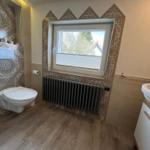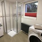 Zur Ausstattung gehören ein Wohnzimmer, ein Esszimmer, eine Küche, drei Schlafzimmer, zwei Bäder mit Waschbecken, Dusche und WC sowie ein zusätzliches kleines Bad mit Waschbecken und WC.