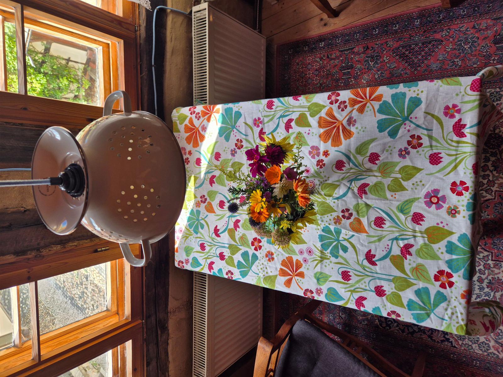 - komplett eingerichtete Küche mit Gasherd, Kühlschrank und Spüle, Kaffee- und Spülmaschine etc.