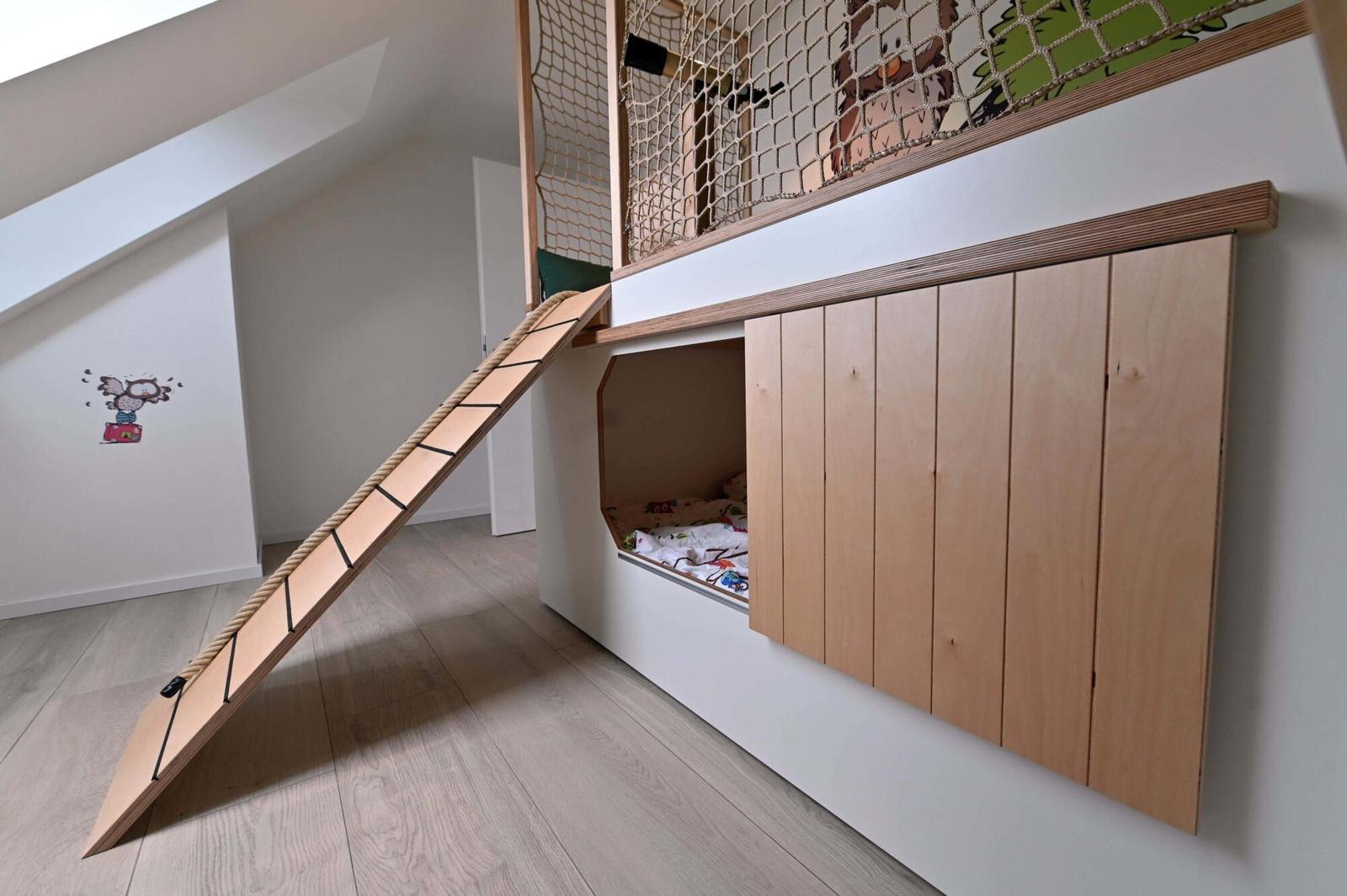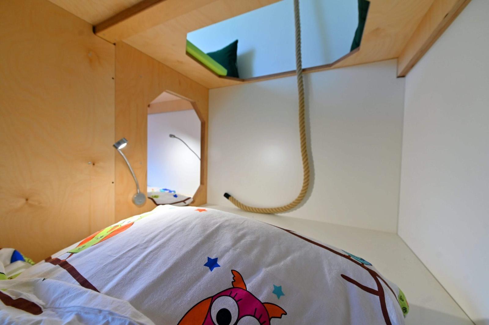 Nebenan können sich die Kinder auf dem Spiel- und Abenteuerbett austoben und um sich abends müde und zufrieden in den Schlafhöhlen einzukuscheln.