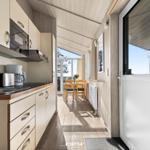 Das Schlafzimmer verfügt über ein großzügiges Doppelbett (180 x 200 cm), und eine ausziehbare Schlafcouch im Wohnbereich bietet zusätzliche Schlafmöglichkeiten. Die kompakte, gut ausgestattete Küche umfasst einen Geschirrspüler, Elektro-/Gasherd und Kühlschrank mit Gefrierfach, ideal für die Zubereitung köstlicher Mahlzeiten.