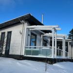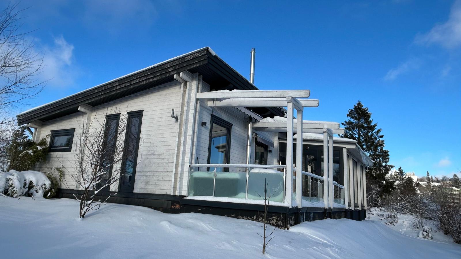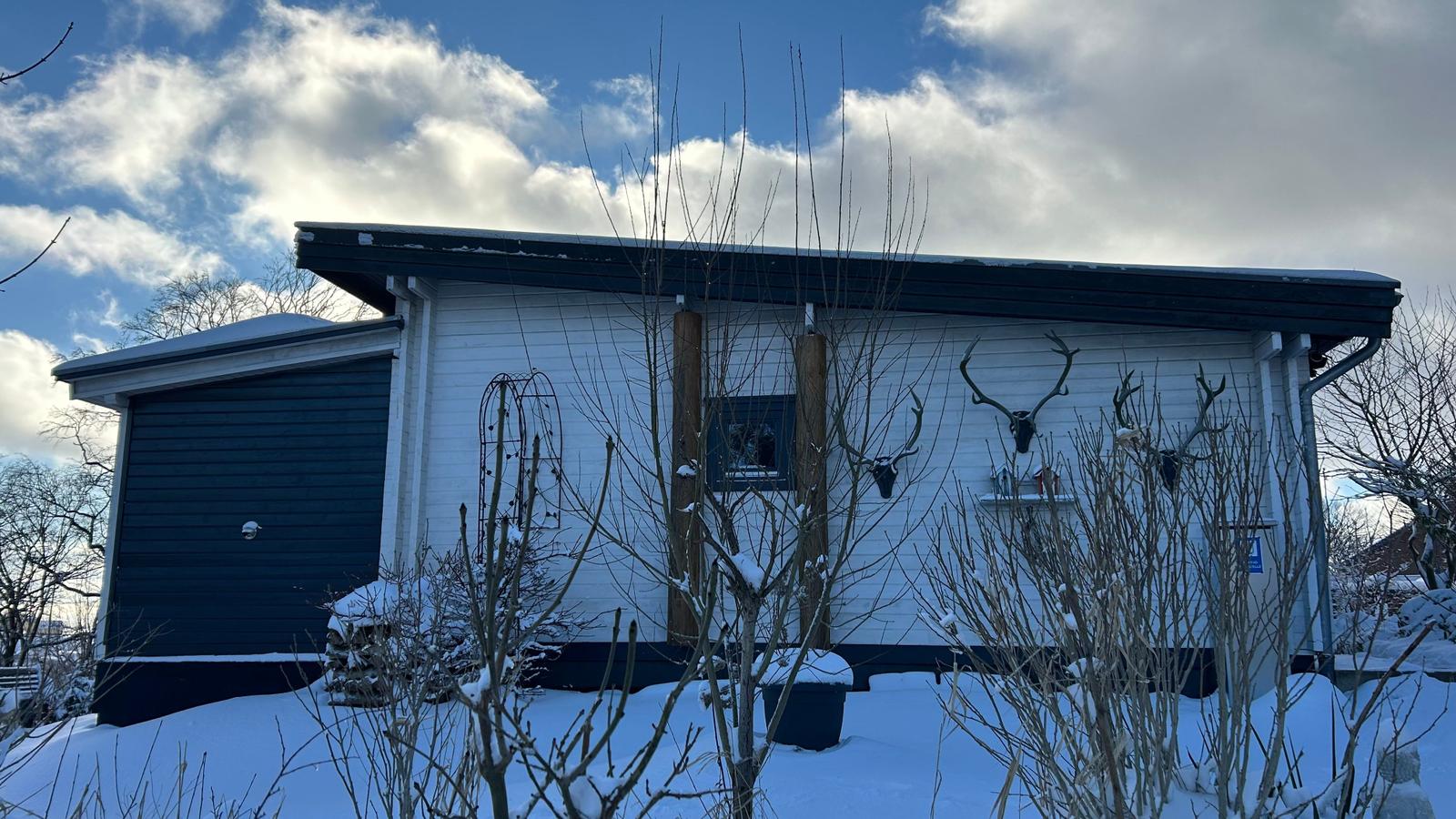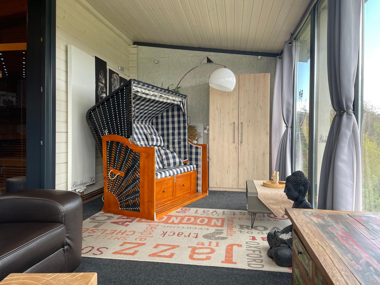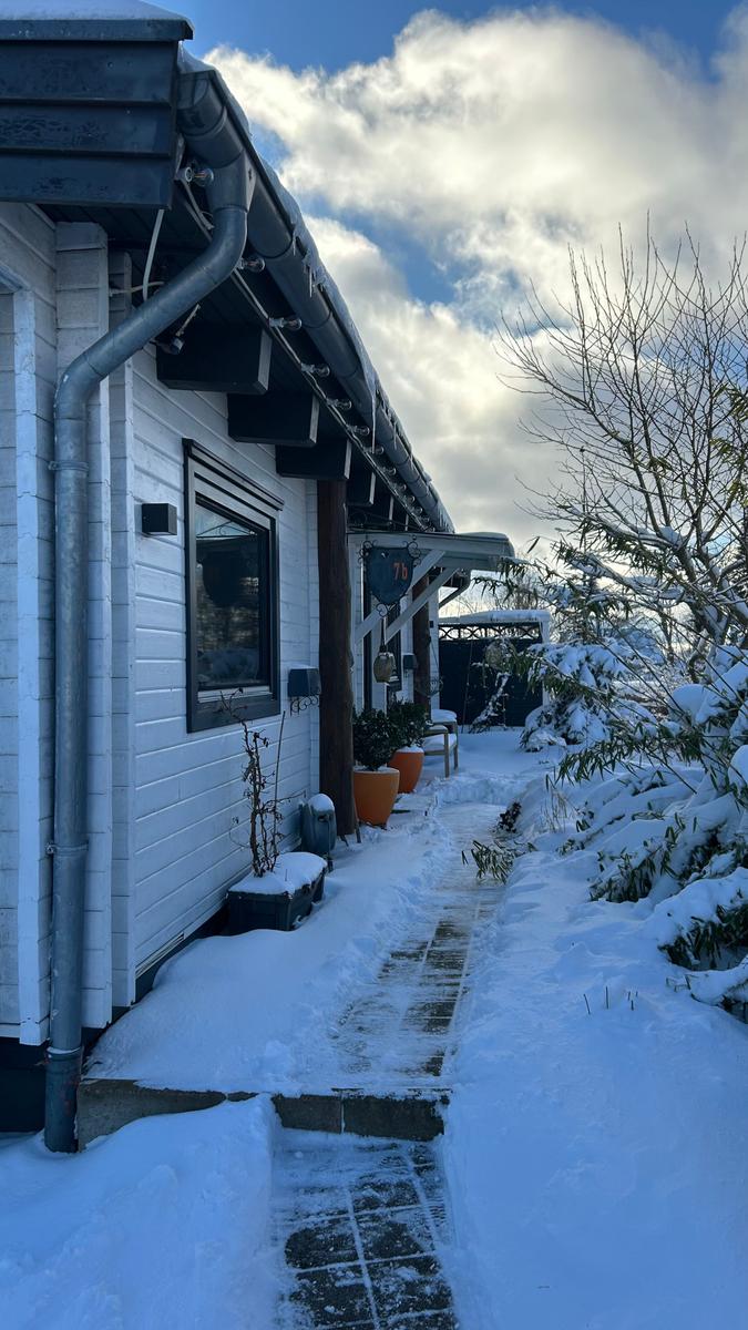 „Natürlich, nachhaltig, komfortabel: Unser Blockhaus wurde aus Kork, Holz und Pappe gebaut Alte Feldbrandsteine ersetzen Fliesen.