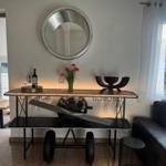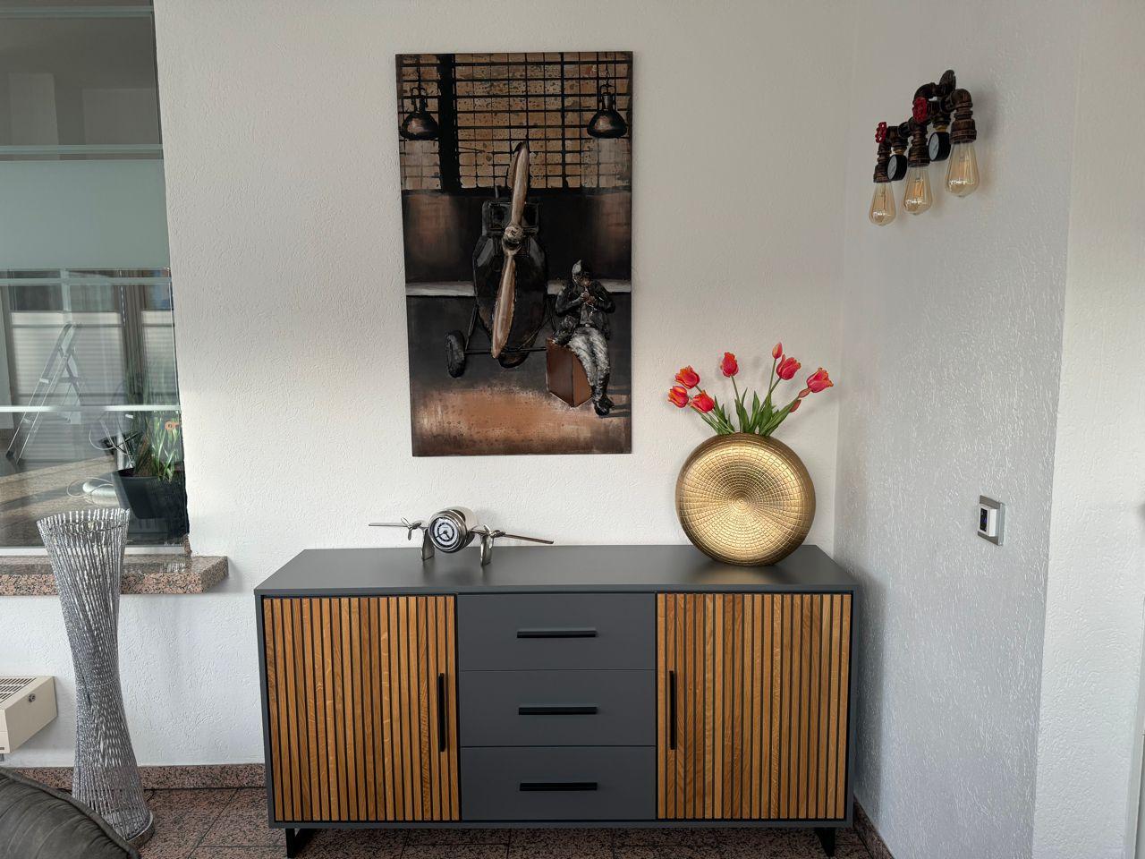 Auf einer Ebenen befinden sich die zwei Schlafzimmer, ein grosszügiges barrierefreies Badezimmer und ein grosser Küchenwohnbereich. Auf der unteren Ebene befindet sich der Essbereich für 6 Personen in einem Wintergarten mit direktem Zugang zu einer Terrasse. Für die ganz Kleinen ist ein Kinderhochstuhl vorhanden.