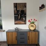 In Schlafzimmer 2 gibt es ein Boxspringbett 1,60 x 2,00 m , eine Kommode und eine Kleiderstange.
