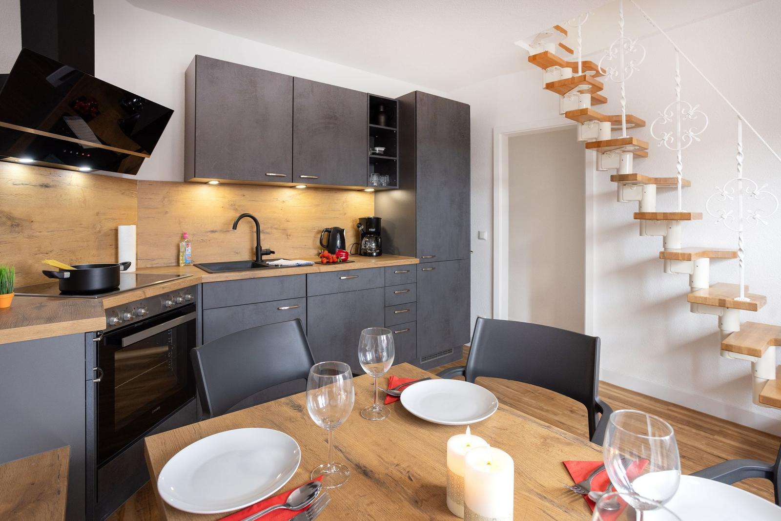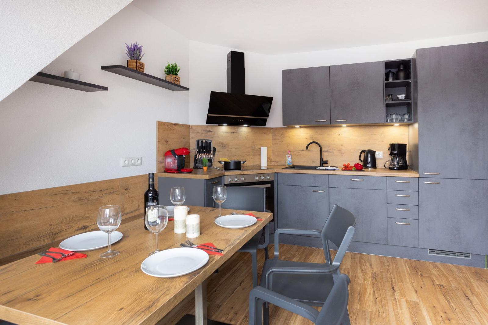 Die Brockenoase Bergzauber ist eine großzügige und moderne Ferienwohnung, die auf 90 m² Platz für bis zu sechs Personen bietet. Sie verfügt über zwei komfortable Schlafzimmer, ein Spielzimmer für Kinder und ein Wohnzimmer mit einer umbaubaren Couch für zusätzliche Schlafmöglichkeiten. Ein großer 50 Zoll Smart TV sorgt für Unterhaltung. Die offene, gut ausgestattete Küche mit Cerankochfeld, Backofen, Geschirrspüler und Kühlschrank ist ideal für gemeinsame Mahlzeiten. Ein modernes Bad mit Dusche sowie ein Gäste-WC im Erdgeschoss mit kostenloser Waschmaschine runden das Angebot ab.