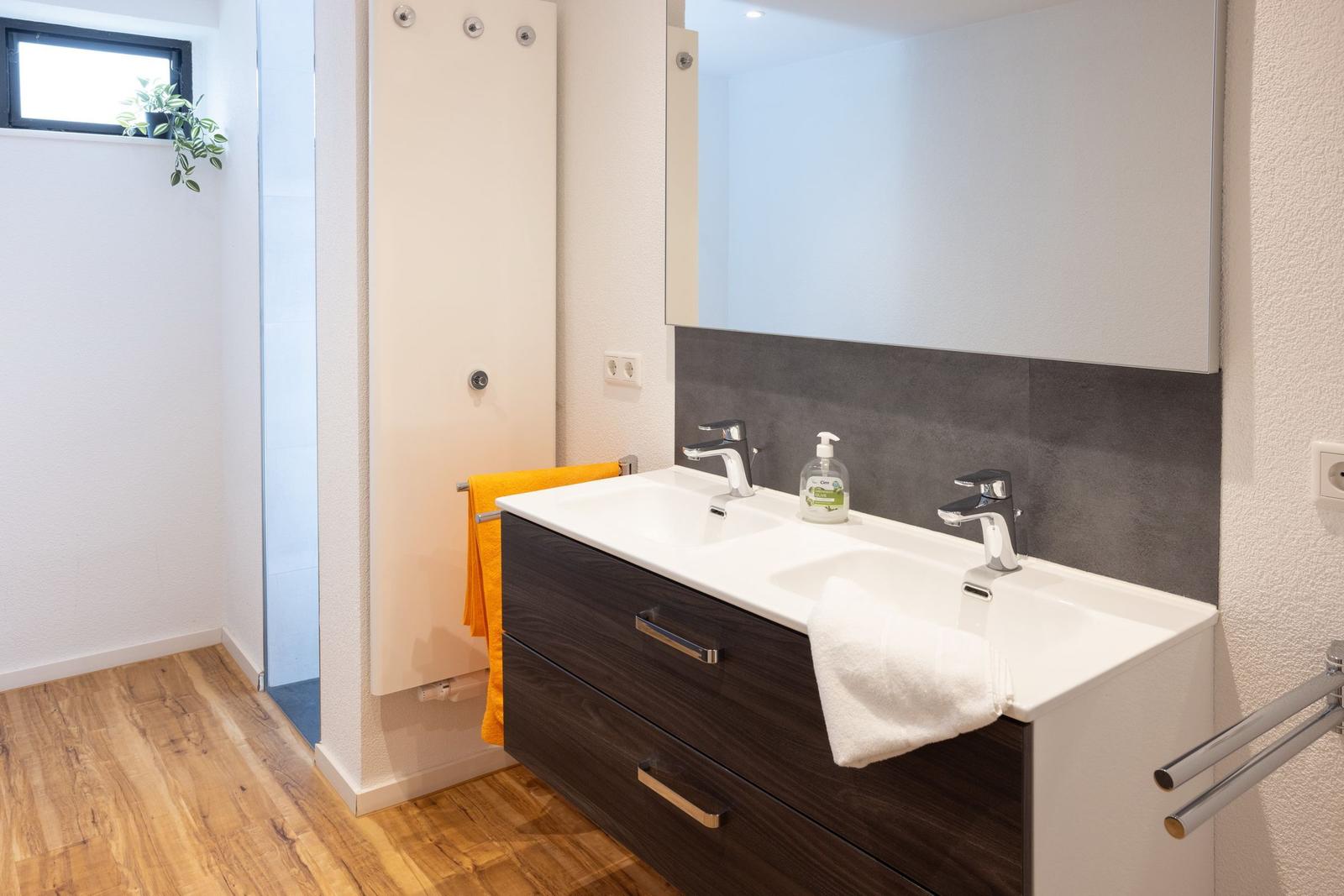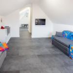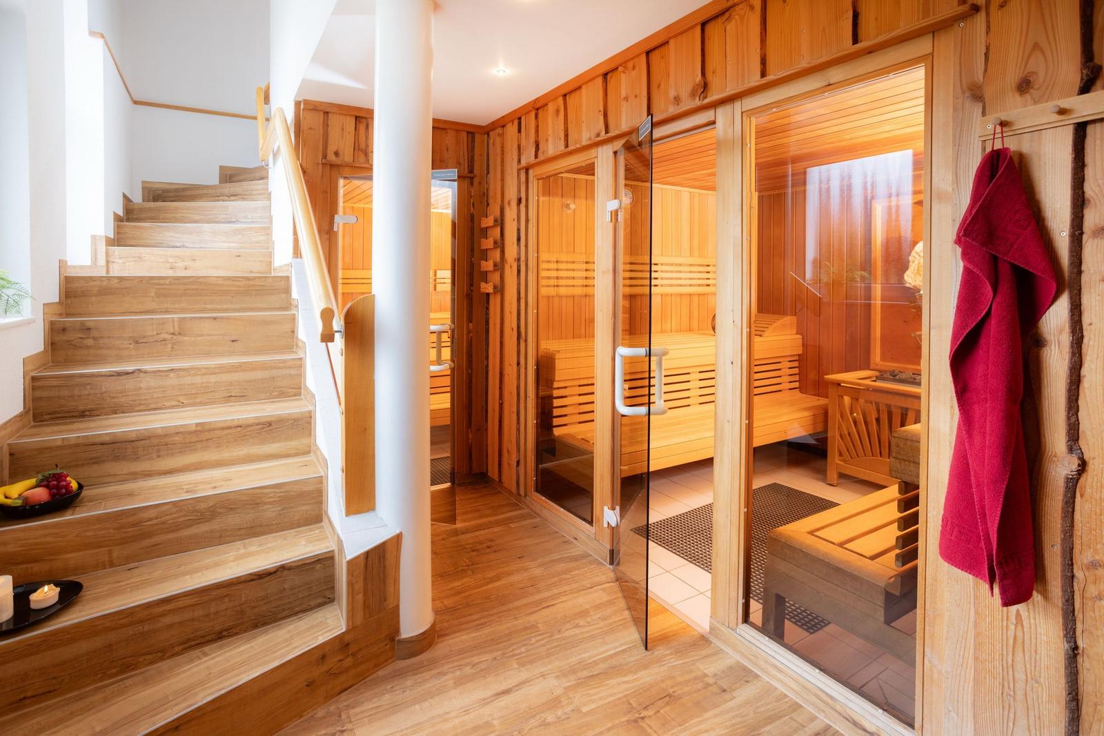 Der großzügige Wellnessbereich im Untergeschoss beherbergt zwei finnische Saunen, ein Dampfbad, ein Solarium und ein Gäste-WC. Ein Badezimmer mit Dusche ist ebenfalls vorhanden. Saunahandtücher sind im Wäschepaket enthalten und können nur gemeinschaftlich im Wellnessbereich genutzt werden. Das Ferienhaus kombiniert höchsten Komfort mit einem entspannten Ambiente für bis zu 12 Personen. Die Anreise ist ab 15 Uhr möglich, die Abreise sollte bis 10 Uhr erfolgen.