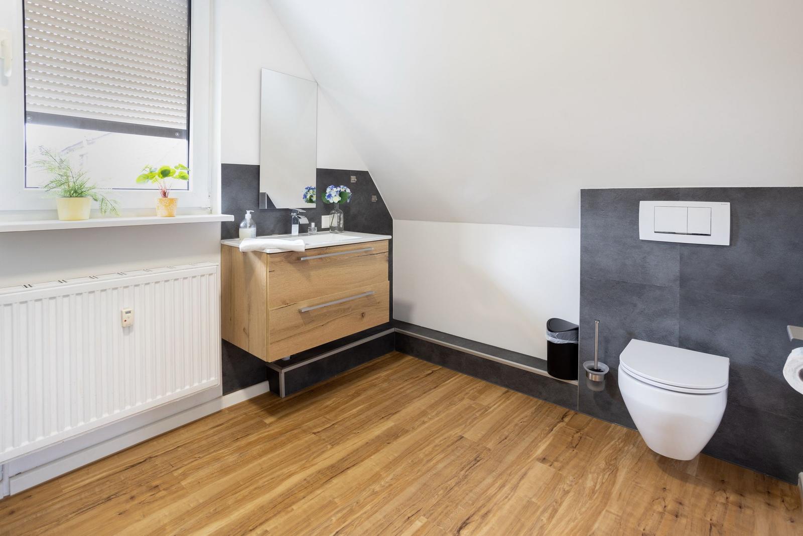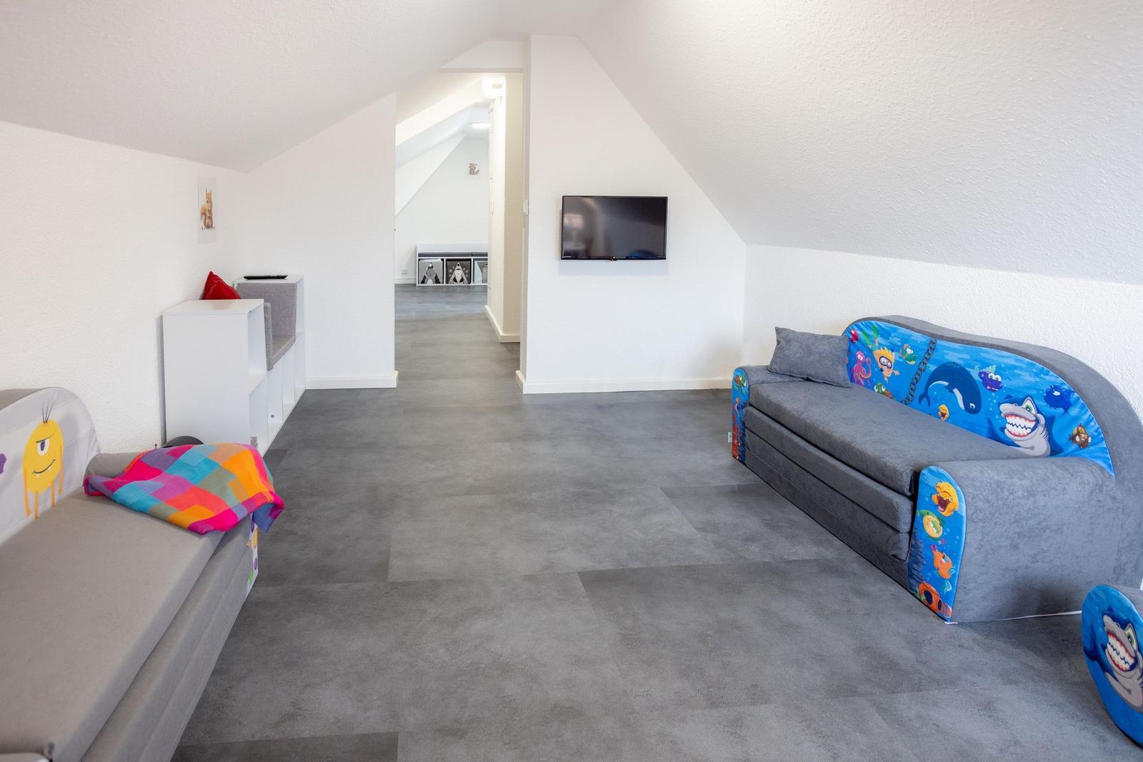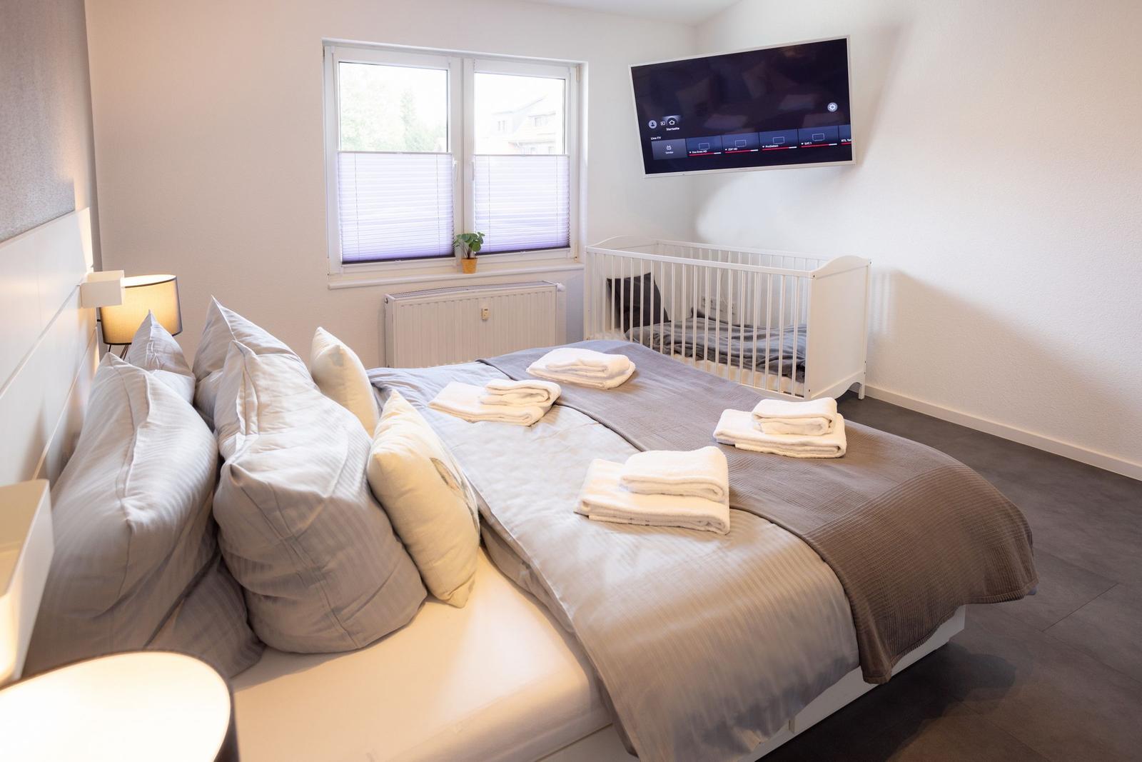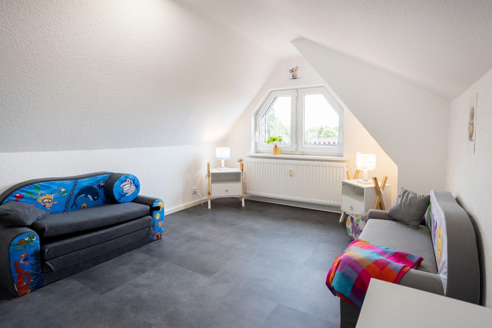 Das Ferienhaus zur Brockenoase bietet helle Räume und moderne Ausstattung, die für einen unvergesslichen Urlaub sorgen. Im Erdgeschoss befindet sich ein gemütliches Wohnzimmer mit Ecksofa, einem Smart TV und einem separaten Esszimmer, das Platz für 8 Personen bietet. Die voll ausgestattete Lounge-Küche lädt zum geselligen Beisammensein ein. Drei Schlafzimmer sind mit komfortablen Doppelbetten (180 x 200) und Smart TVs ausgestattet, zudem ist ein Babybett verfügbar.