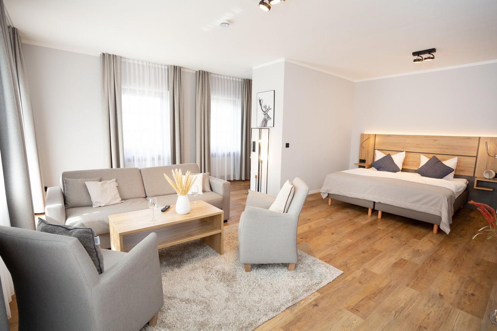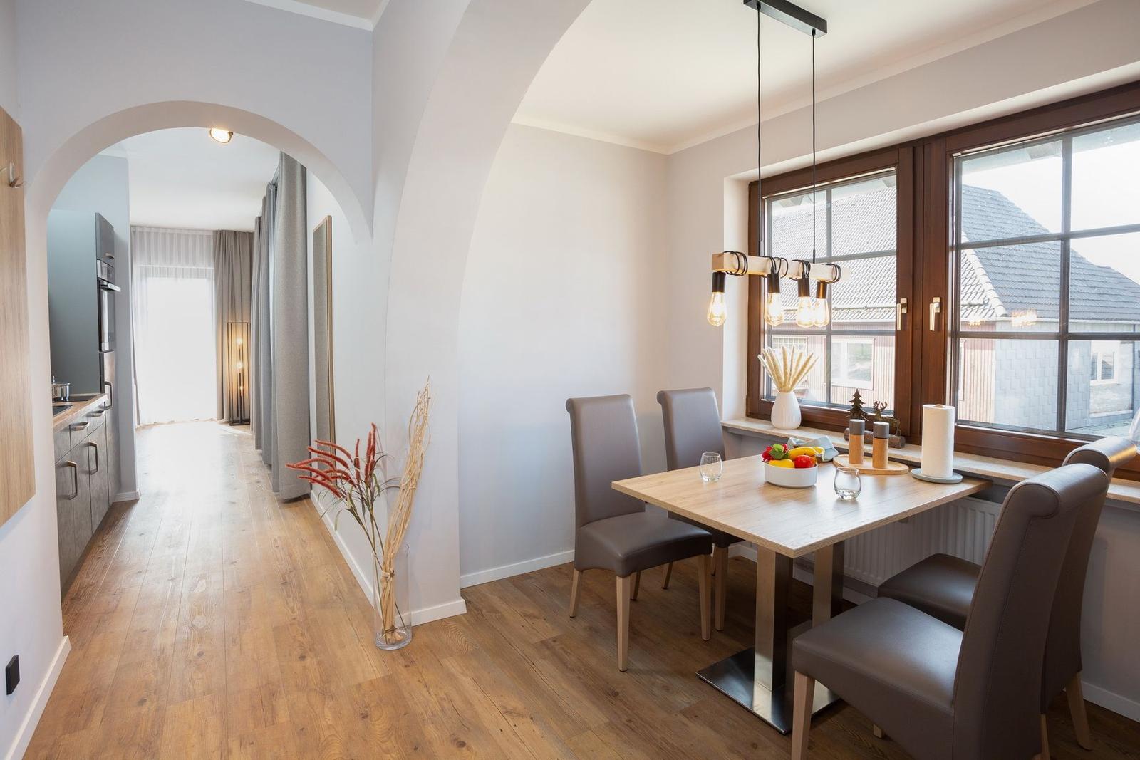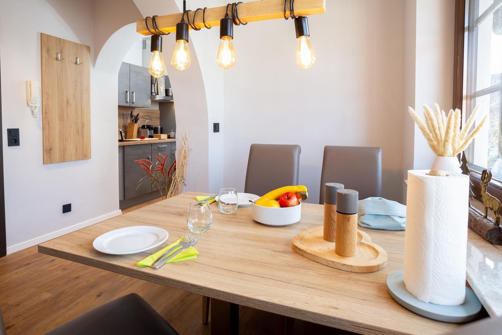 Entdecke das familienfreundliche Studio 5 im Chalet Bergzeit: Platz für bis zu 4 Personen, eine voll ausgestattete Küche, ein großer Balkon und Abenteuer direkt vor der Tür im malerischen Harz!