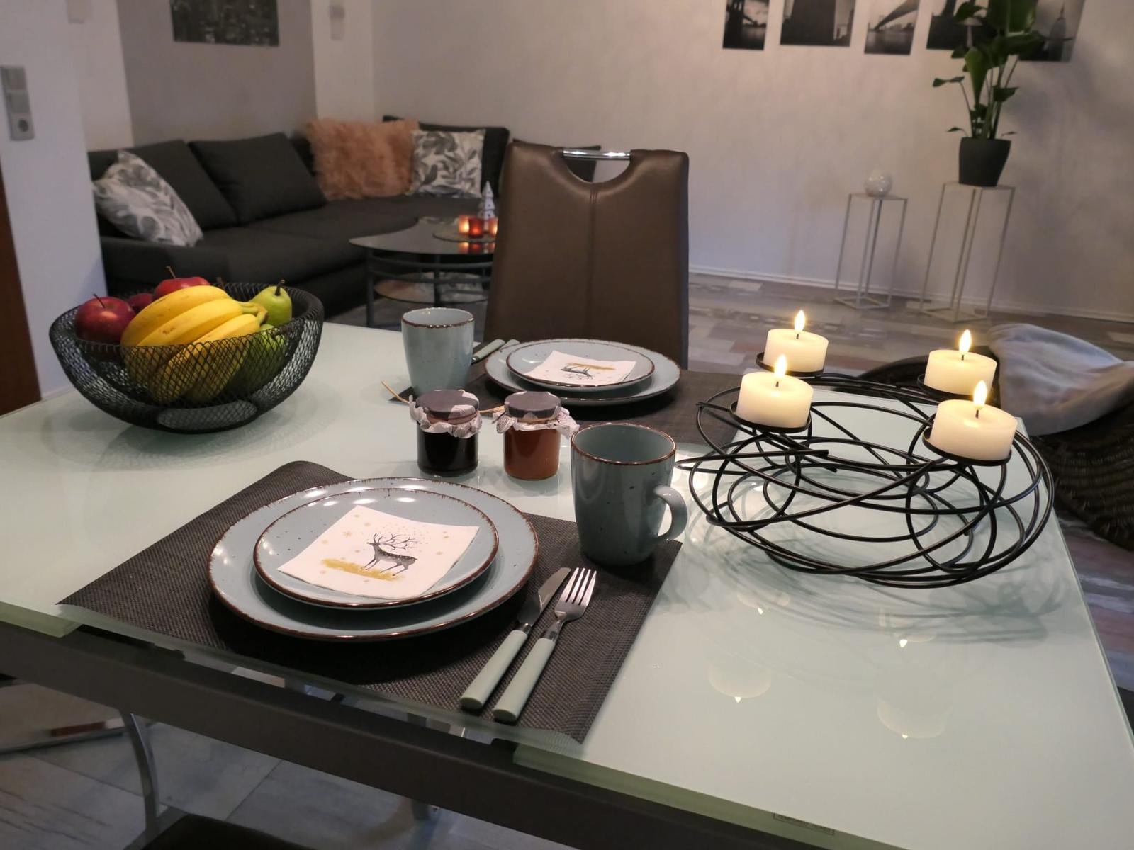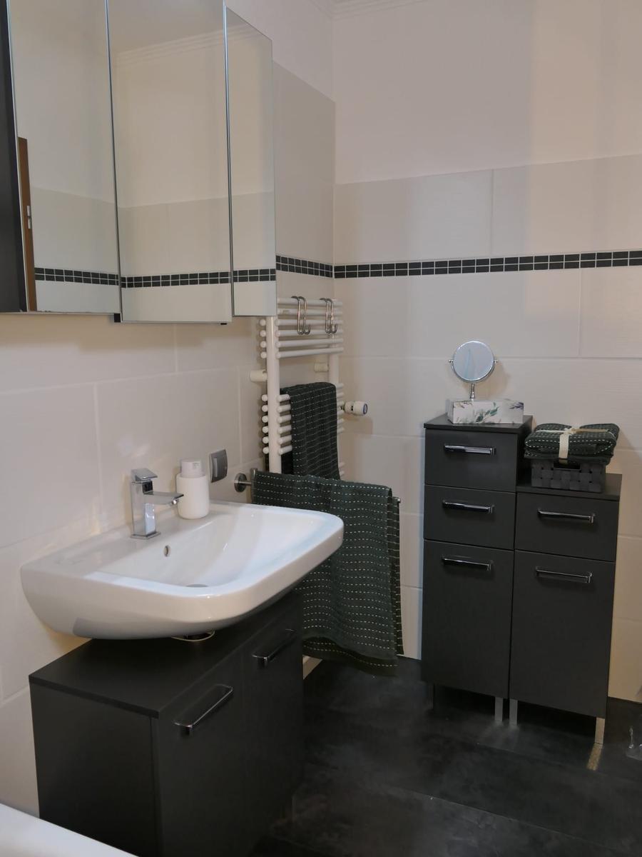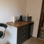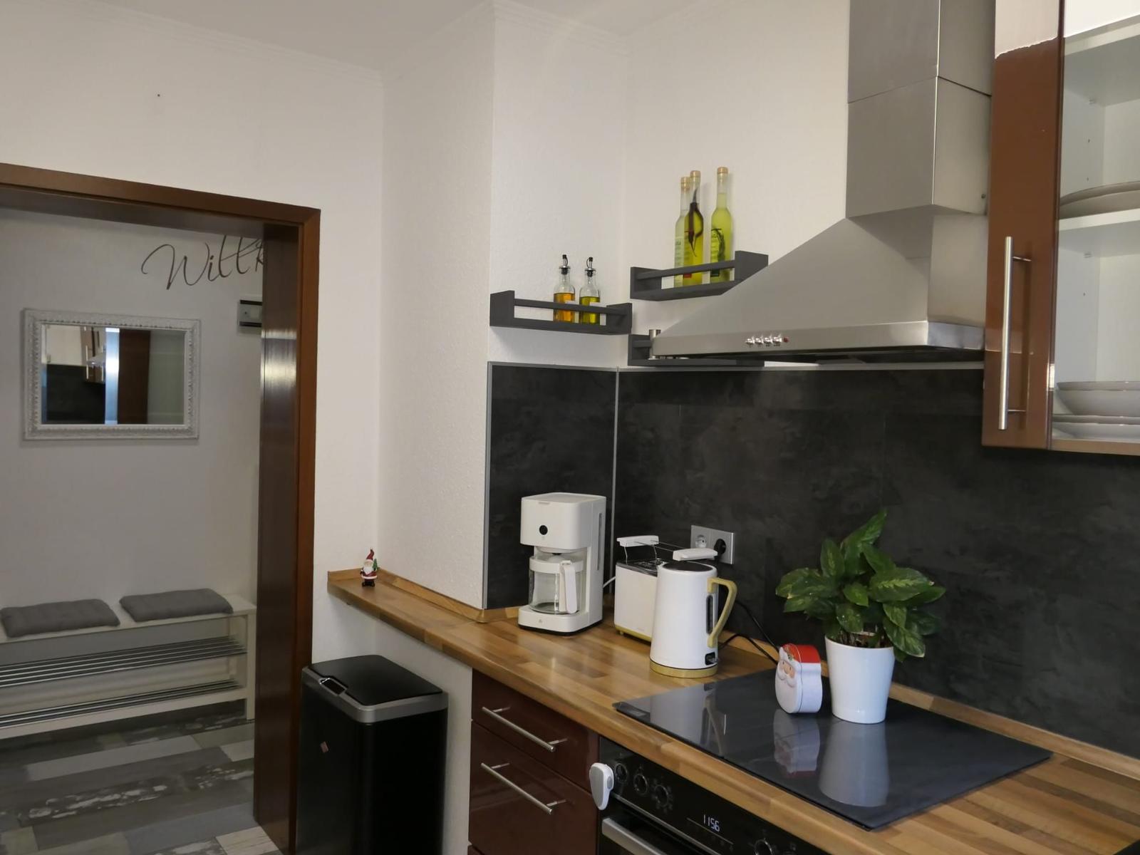 Das gemütliche Sofa lädt für ruhige Momente zum verweilen ein und lässt sich bei Bedarf für bis zu 2 Personen als Schlafsofa umfunktionieren. Die funktionelle moderne Küche verfügt über einen Herd mit Ceranfeld , Mikrowelle , Kaffeemaschine , Kaffee Pad Maschine ,
