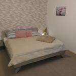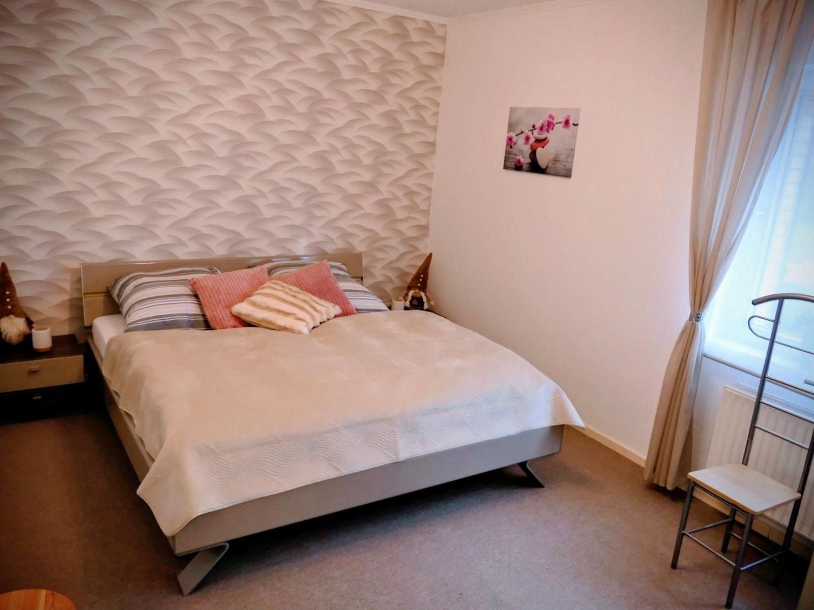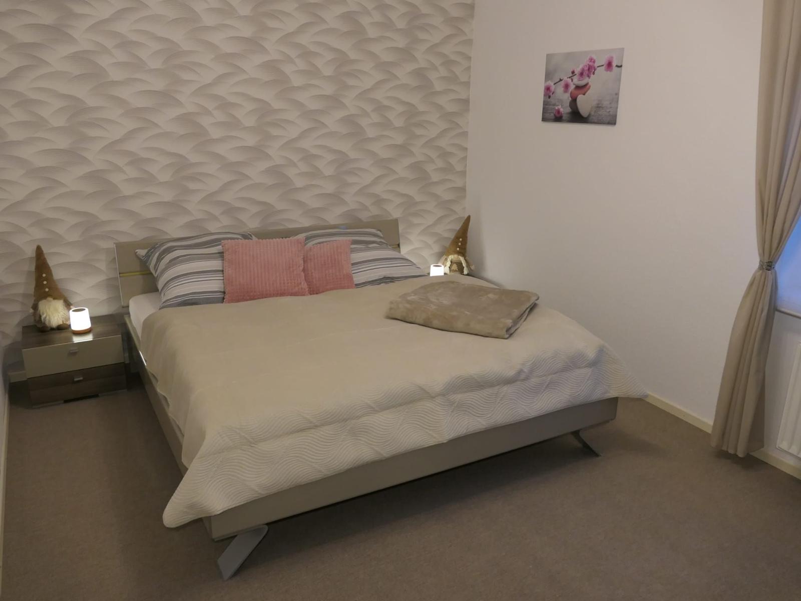 Das Doppelbett ( 180 x 200 cm ) bietet Ruhe und Erholung.