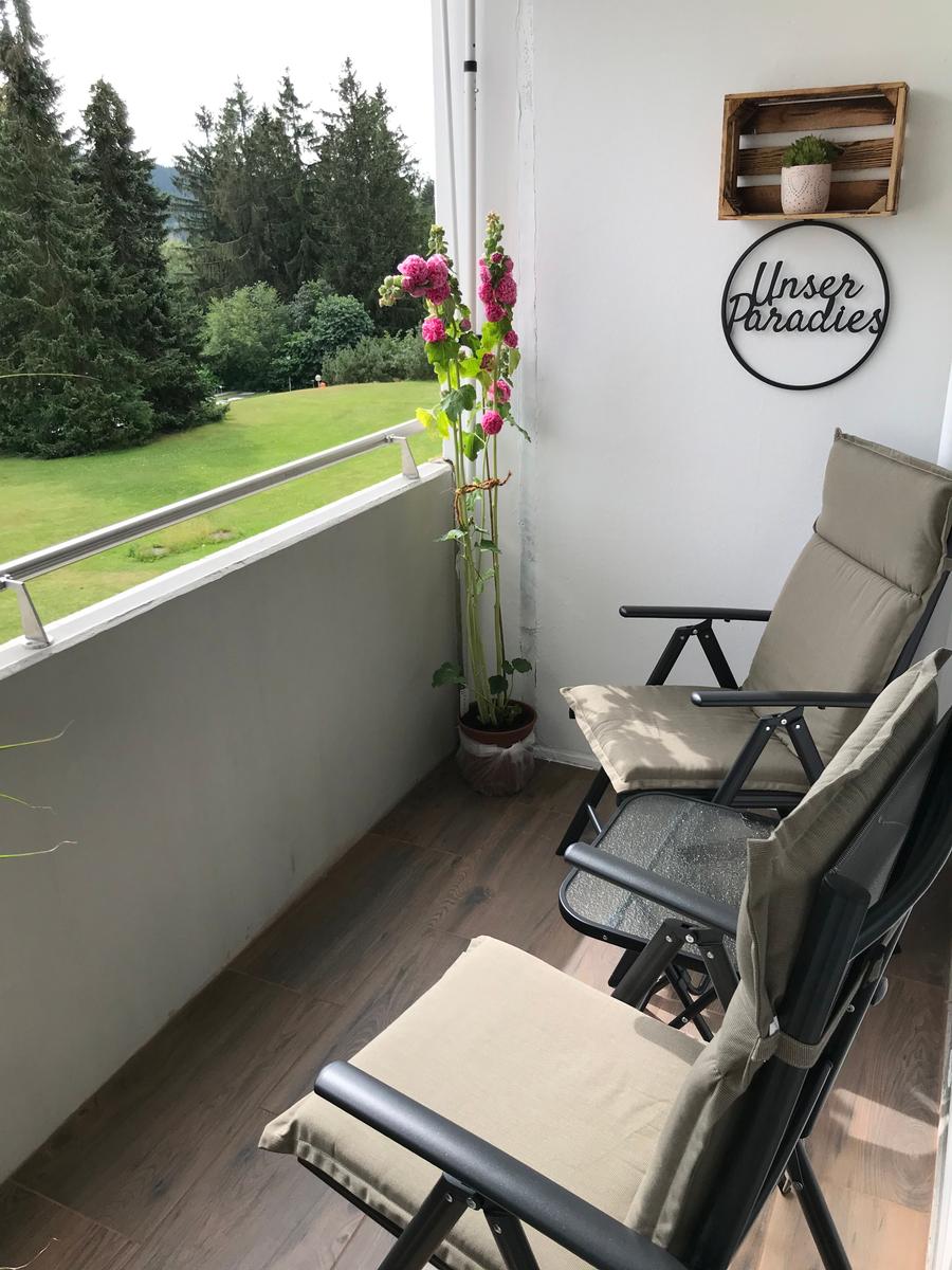 Balkon: Atemberaubender Blick ins Grüne und auf den Bocksberg – Sonnenuntergänge inklusive!