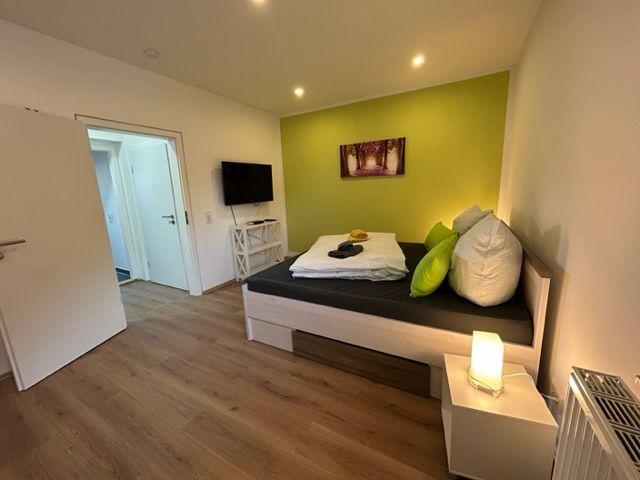 Ein weiteres Schlafzimmer bietet ein Doppelbett, Kleiderschrank und TV. Auch hier sorgen bequeme Matratzen und Bettwäsche für eine angenehme Nachtruhe.