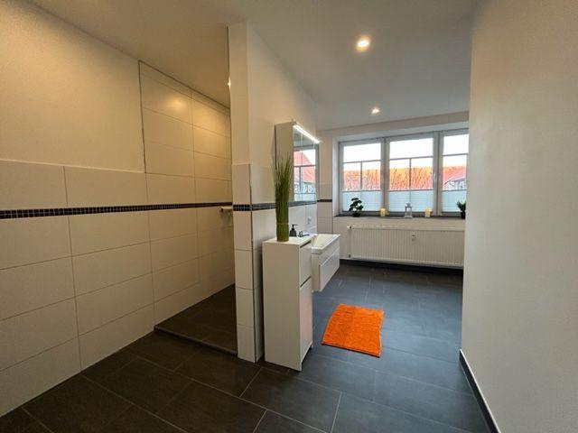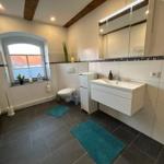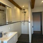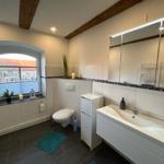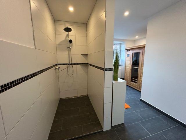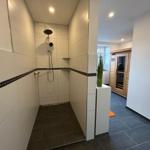 Das moderne Badezimmer verfügt über eine geräumige Dusche, WC, Waschbecken und Fön. Frische Handtücher sowie erste Toilettenartikel sind bei Ihrer Ankunft bereitgestellt. Waschmaschine, Trockner und Sauna.