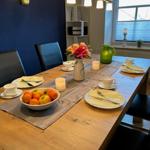 Unsere voll ausgestattete Küche bietet alles, was Sie für Ihre Mahlzeiten benötigen: Herd, Backofen, Kühlschrank, Gefrierfach, Kaffeemaschine, Wasserkocher und Toaster. Geschirr, Besteck und Kochutensilien stehen ebenfalls zur Verfügung. Der angrenzende Essbereich bietet Platz für gemeinsame Mahlzeiten in entspannter Runde.