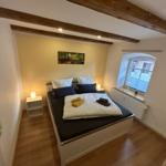 Das Hauptschlafzimmer ist mit einem komfortablen Doppelbett und TV ausgestattet, das mit hochwertigen Bettwaren für erholsame Nächte sorgt. Ein geräumiger Kleiderschrank und zusätzliche Ablagen bieten ausreichend Stauraum für Ihr Gepäck. Ein zusätzliches Bett 0,90 x 2,00m ist zustellbar.