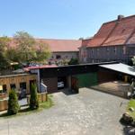 Im ruhigen Innenhof lädt eine großzügige Terrasse mit Sitzmöbeln und Sonnenschirm zum Verweilen ein. Starten Sie hier den Tag bei einem Frühstück im Freien oder lassen Sie den Abend mit einem Glas Wein ausklingen.