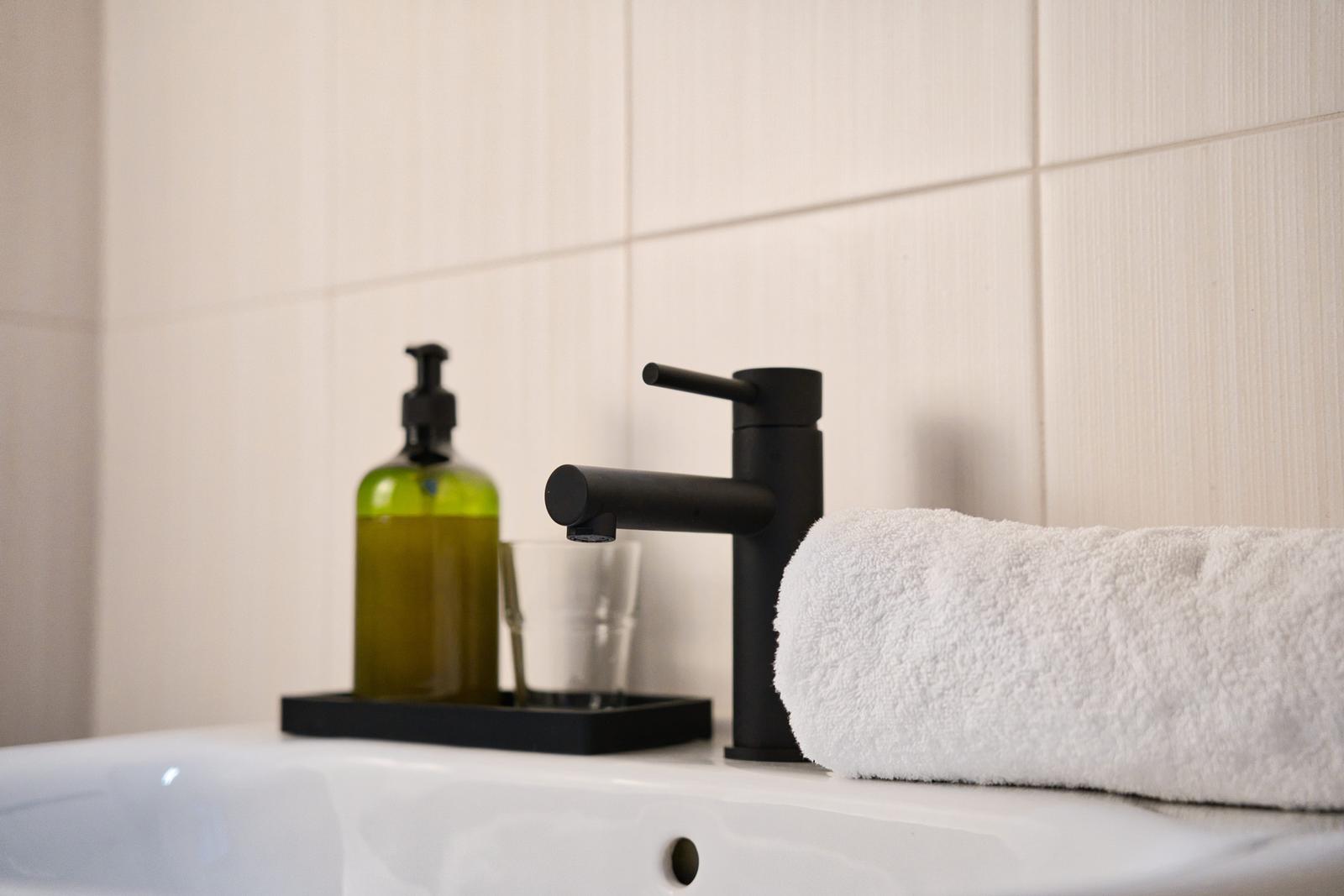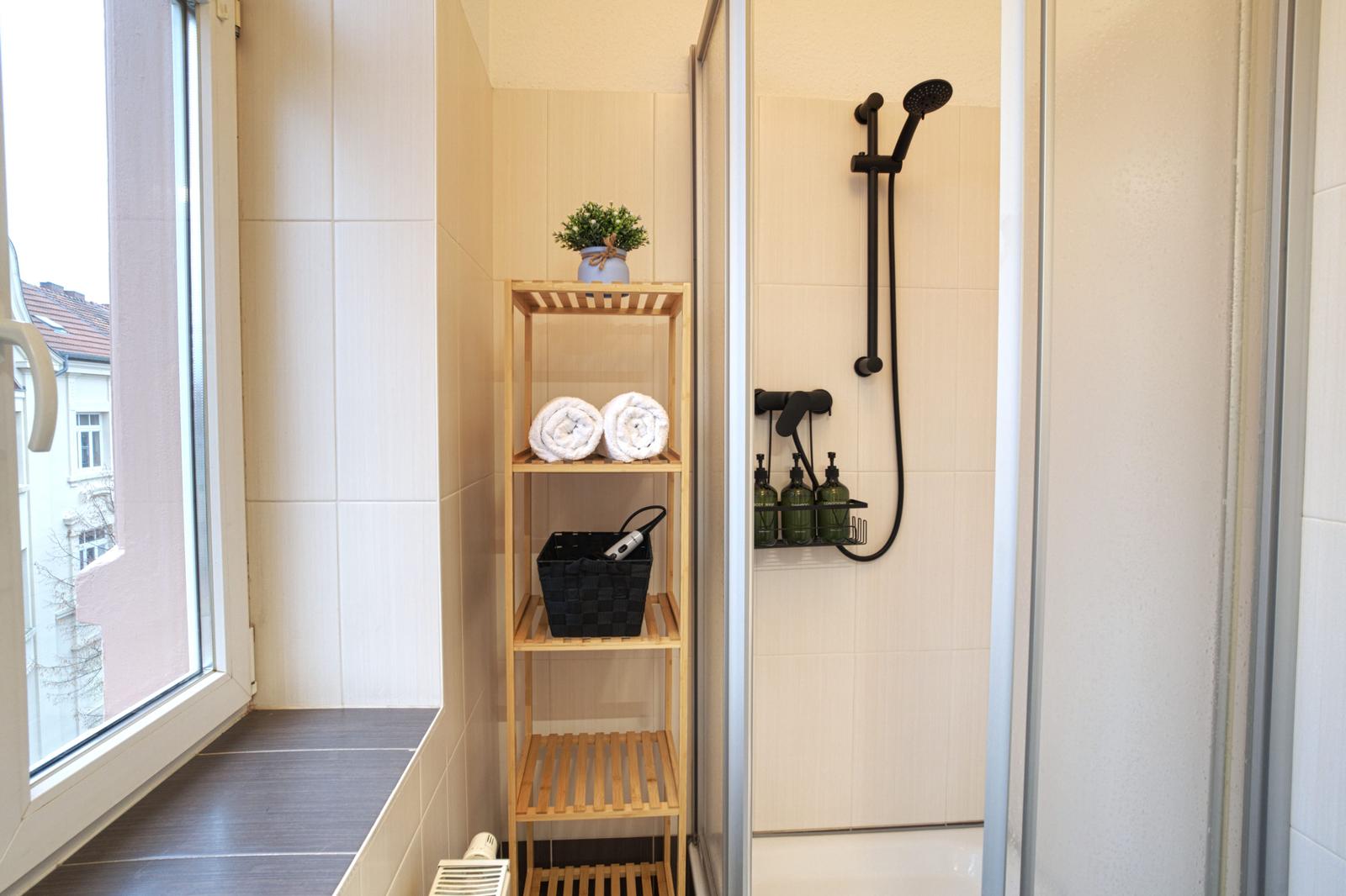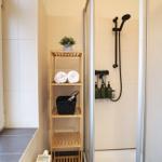 Das Bad verfügt über eine moderne Dusche; die Toilette befindet sich in einem separaten Raum. Eine Waschmaschine steht Ihnen in einem getrennten Hauswirtschaftsraum zur Verfügung.