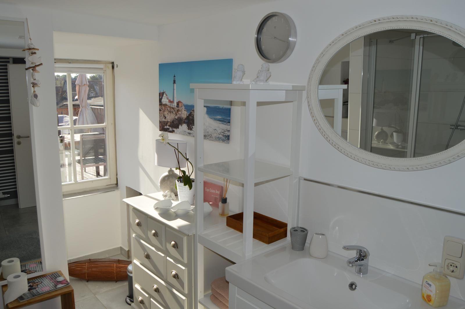 Das Badezimmer bietet Ihnen eine XXL Dusche, Fön, und einem Bügeleisen. Das Apartment hat insegesamt drei vollwertige Räume. Zwei abgeschlossene Schlafzimmer, 1. SZ mit einem Doppelbett und das 2. SZ mit zwei Einzelbetten. Alle Betten sind für einen hohen Schlafkomfort ausgelegt. Der zentrale Raum ist das Wohnzimmer, samt Essplatz und der offenen Küche. Das Badezimmer ist groß und geräumig. Im Flur gibt es einen Schreibtisch an dem man einen tollen Blick auf die Terrasse hat. Zusätzlich ist die Wohnung in allen Bereichen des Apartment mit WLAN ausgestattet.