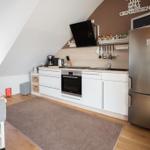 Es ist eine voll ausgestattete Küche mit Spüler, Induktionsherd, Kühl- und Gefrierkombi, Kaffeemaschine, Toaster und einem Wasserkocher vorhanden.