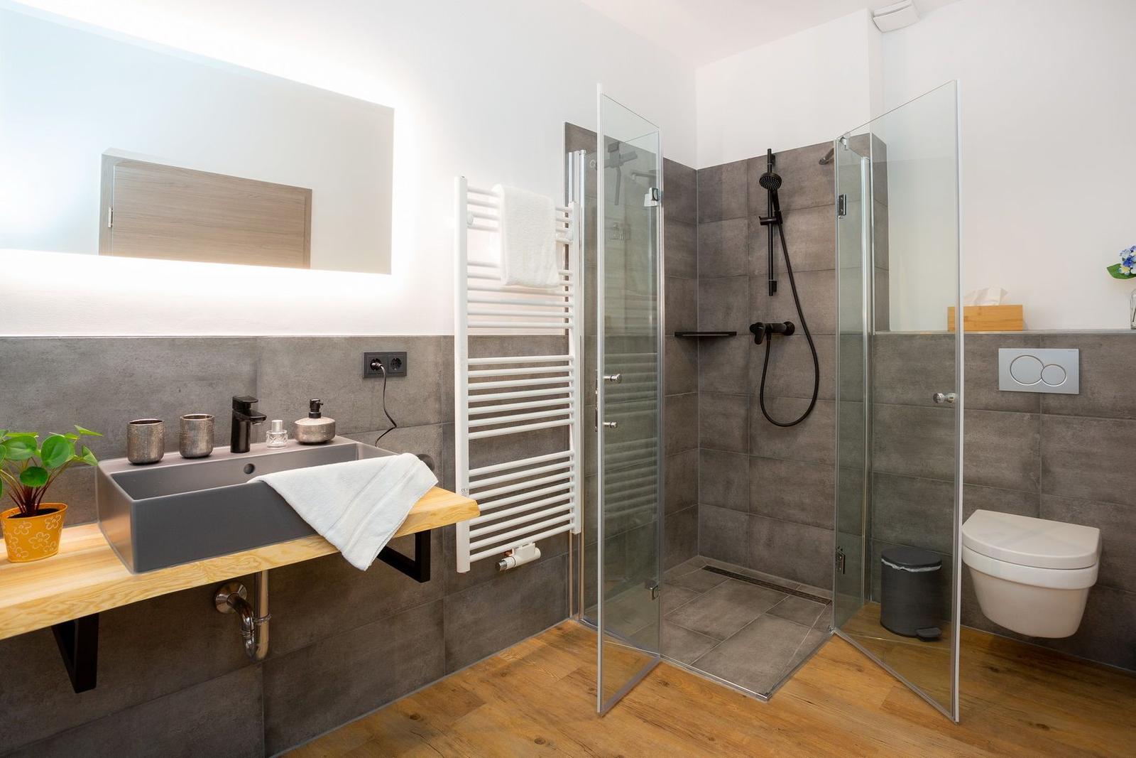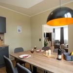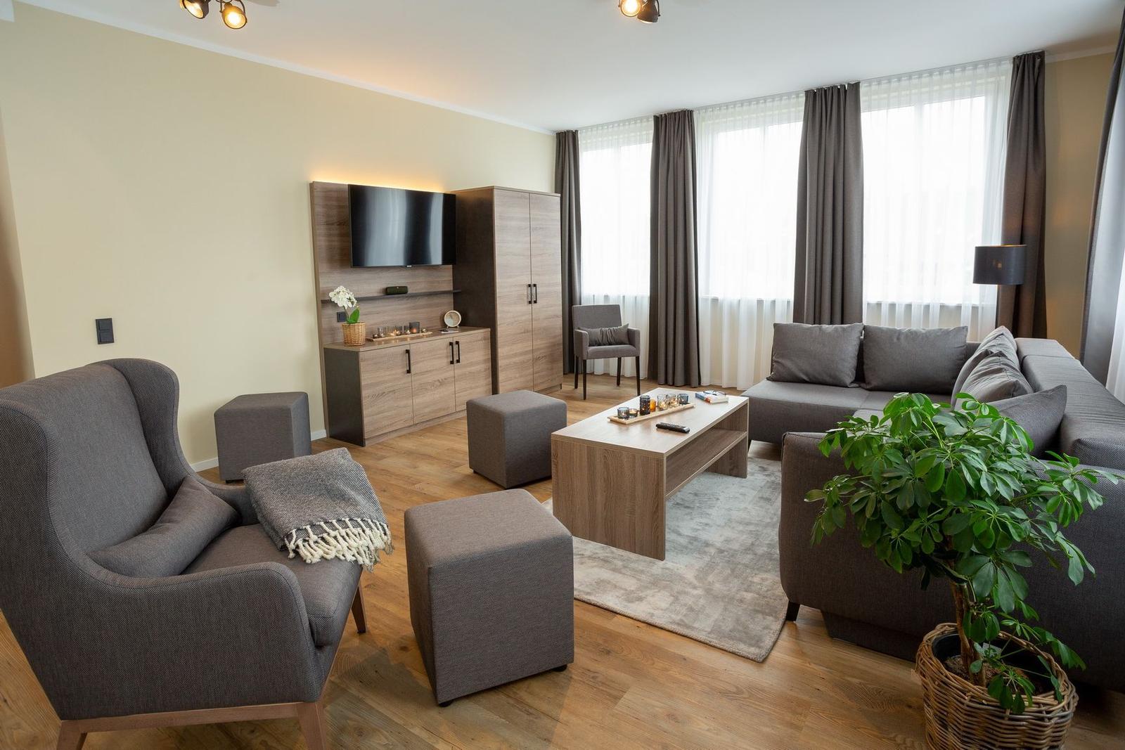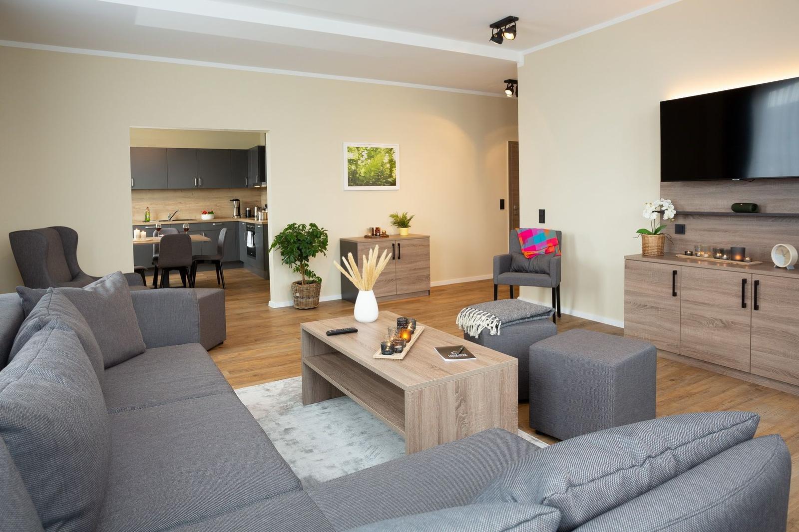 Die Wohnung 1 im Lieblingsquartier St. Andreasberg bietet auf 136 m² einen großzügigen und kinderfreundlichen Rückzugsort. Der lichtdurchflutete Wohnbereich lädt zum Entspannen ein und verfügt über einen Smart-TV. Die voll ausgestattete Küche umfasst moderne Geräte wie Herd, Backofen, Kühlschrank und Geschirrspüler sowie ausreichend Stauraum und einen Essbereich, ideal für gemeinsame Mahlzeiten. Es stehen drei separate Schlafzimmer mit bequemen Boxspringbetten zur Verfügung, jedes ausgestattet mit einem Smart-TV und Staumöglichkeiten. Zwei moderne Badezimmer bieten eine Dusche und eine Badewanne, jeweils mit Waschbecken und Toilette. Handtücher und ein Haartrockner sind ebenfalls vorhanden. Kinderbetten können auf Wunsch kostenlos bereitgestellt werden. Kostenloses WLAN ist verfügbar, und ein Starterpaket für die Küche erleichtert den Aufenthalt. Die Anreise ist ab 15 Uhr möglich, der Check-out sollte bis 10 Uhr erfolgen.